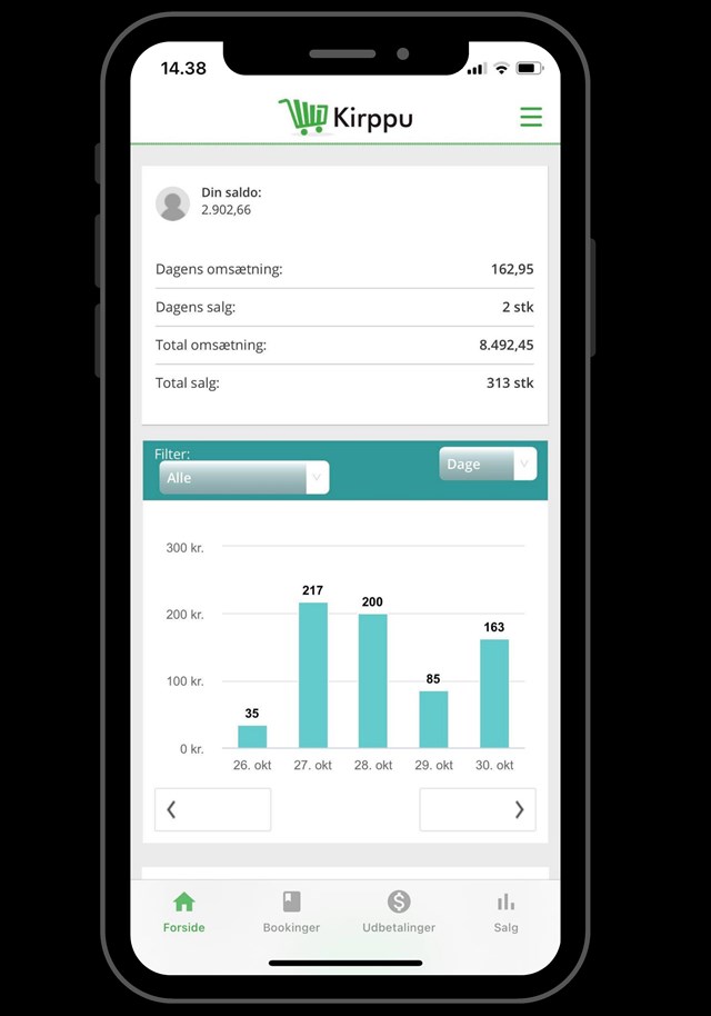 Foto: Med Kirppus app har standlejerne et detaljeret overblik over, hvordan det går med at få solgt deres ting, som personalet i Kirppu står for at sælge.